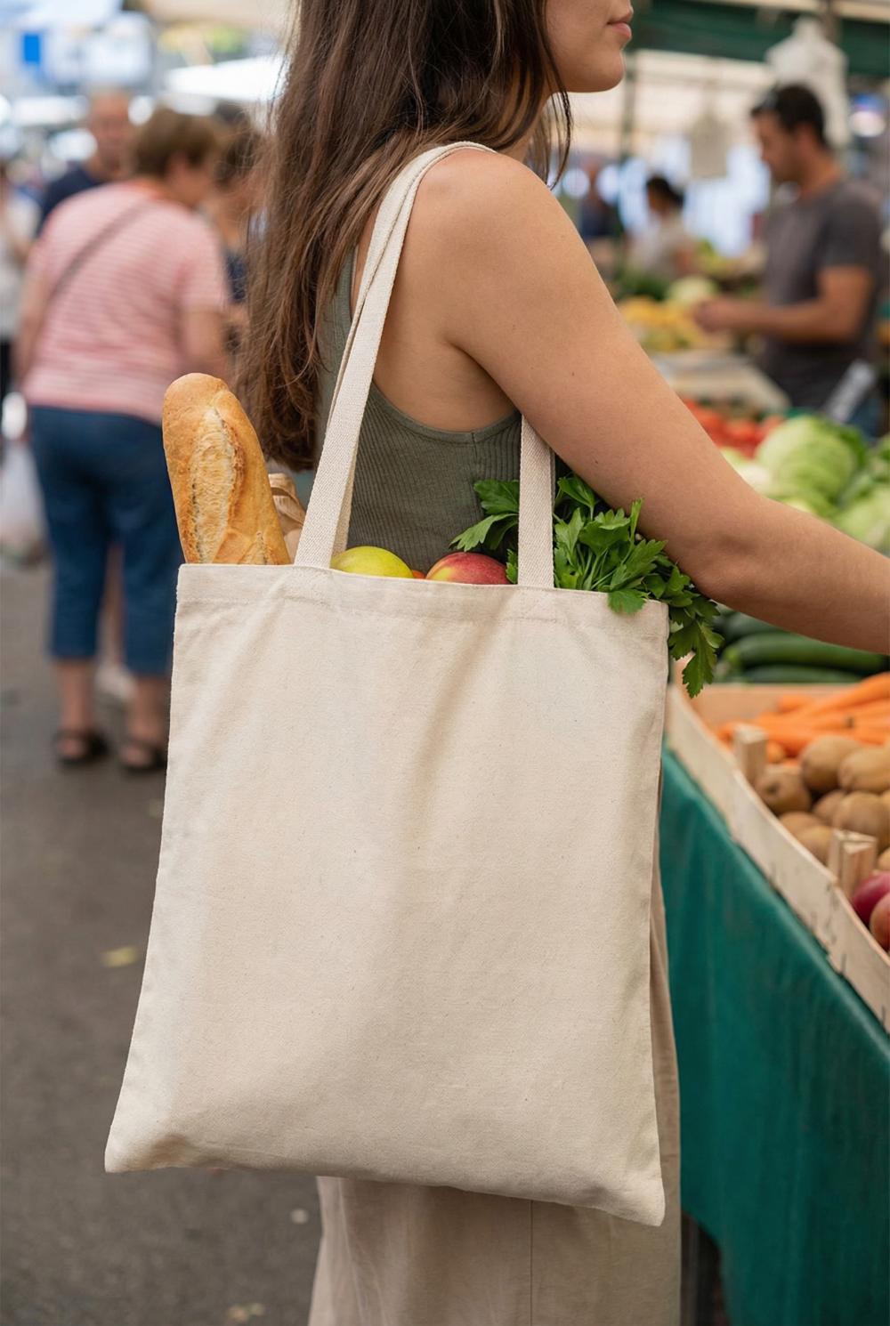 Introducing a bag with long handles, made entirely of cotton. This standard-sized bag comes with an OEKO-TEX certificate and premium finishes. Its weight has been increased to 110 grams for added durability and ease of printing, all while maintaining a highly competitive price. This is the perfect choice for large promotional campaigns