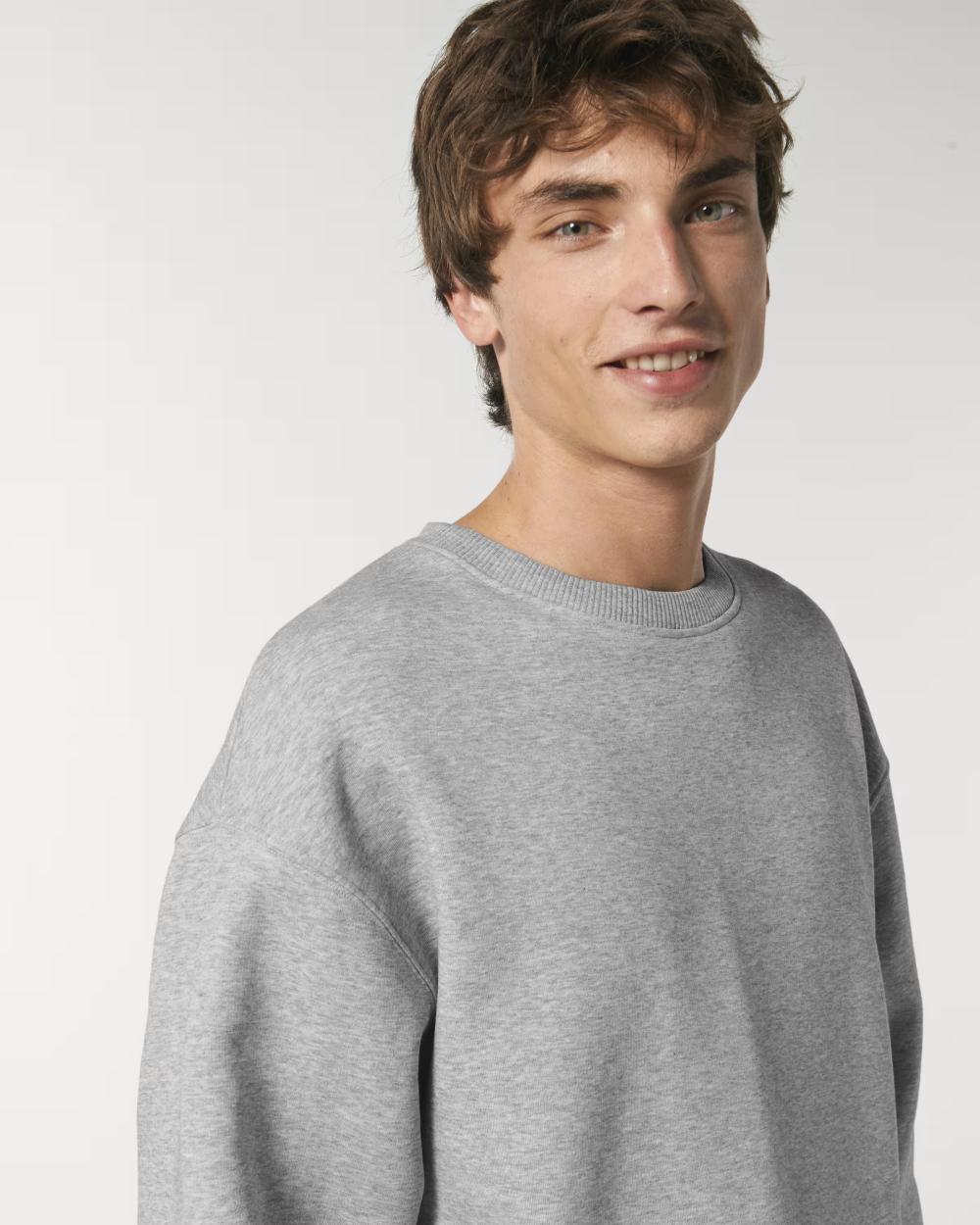 Premium sweatshirt with set-in sleeves for a modern, structured fit. Features 2x1 rib at collar, cuffs, and hem for comfort and shape retention. Double-needle stitching on all seams ensures durability and a high-quality finish. Inside herringbone back neck tape and self-fabric half moon provide reinforcement and refined detail. Perfect for everyday wear or customization, this sweatshirt combines minimalist style, strength, and comfort in one versatile garment designed to last and look great on any occasion.