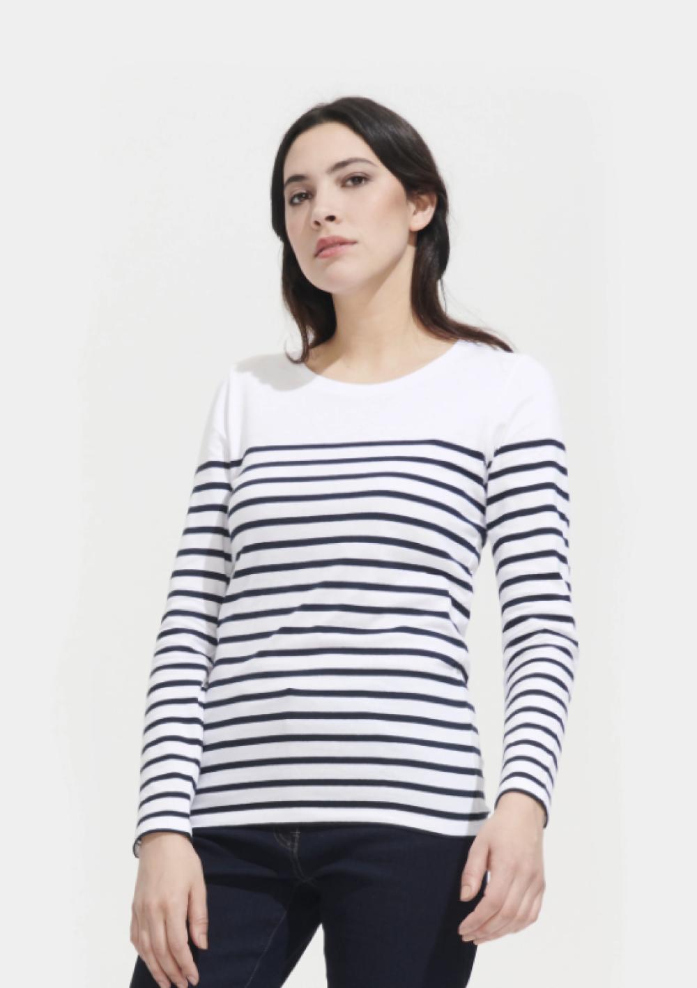 Produits Madame ♀ Longsleeves et Robes 5 T-Shirt Femme Manches Longues à Rayures Sol’s Matelot (160g)